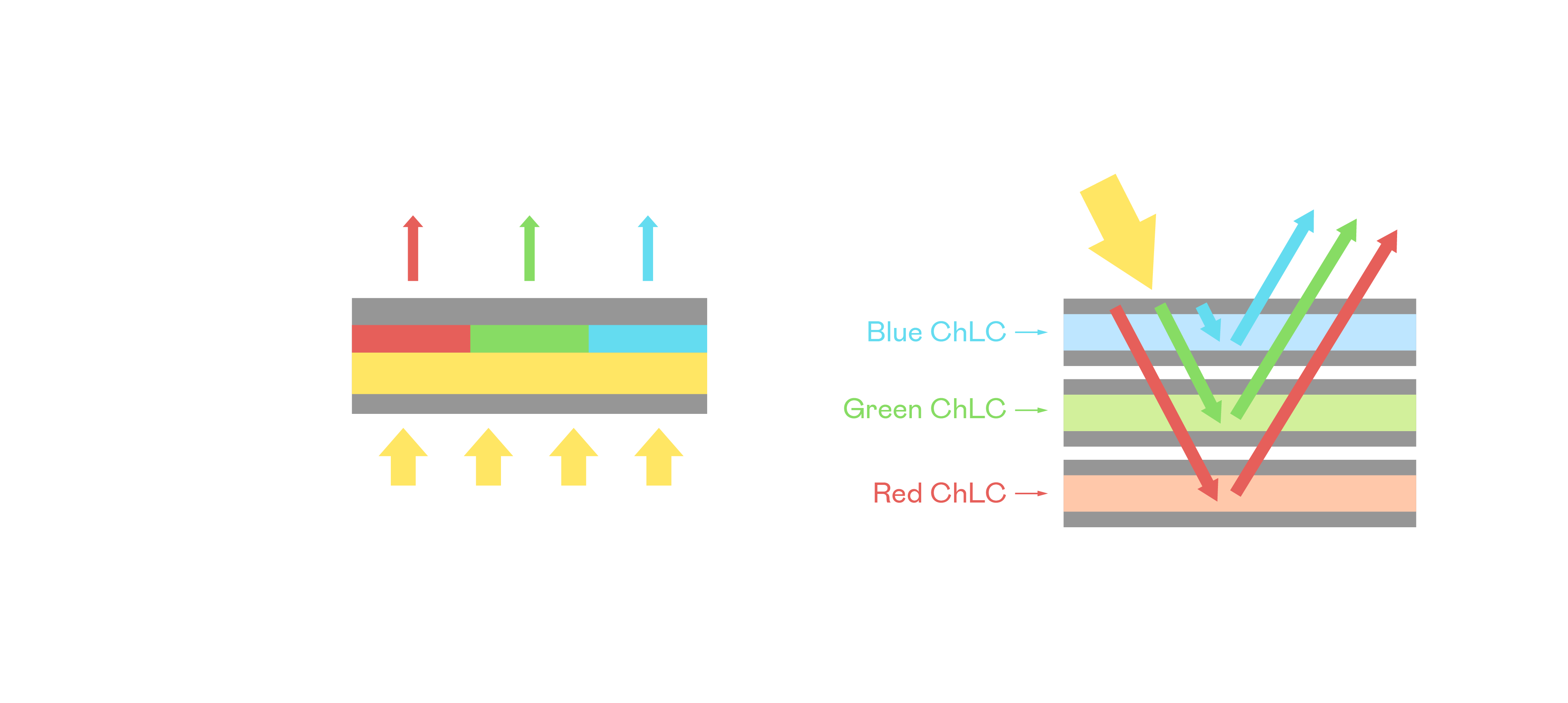 九游会胆固醇液晶显示器是由红、绿、蓝三层胆固醇液晶面板堆叠而成,并采用无彩色滤光片设计,减少环境光在反射过程中的损耗。